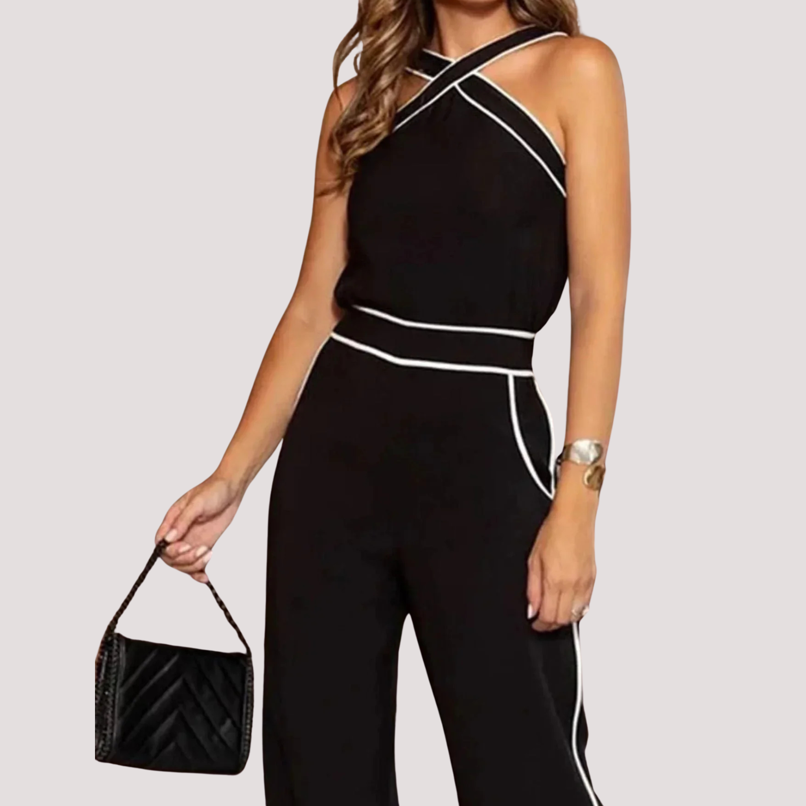 The Ivy Set is the definition of timeless elegance. Its loose fit and high waist enhance the silhouette, while the criss-cross detail on the top adds a sophisticated touch. Perfect for the office or a special dinner.